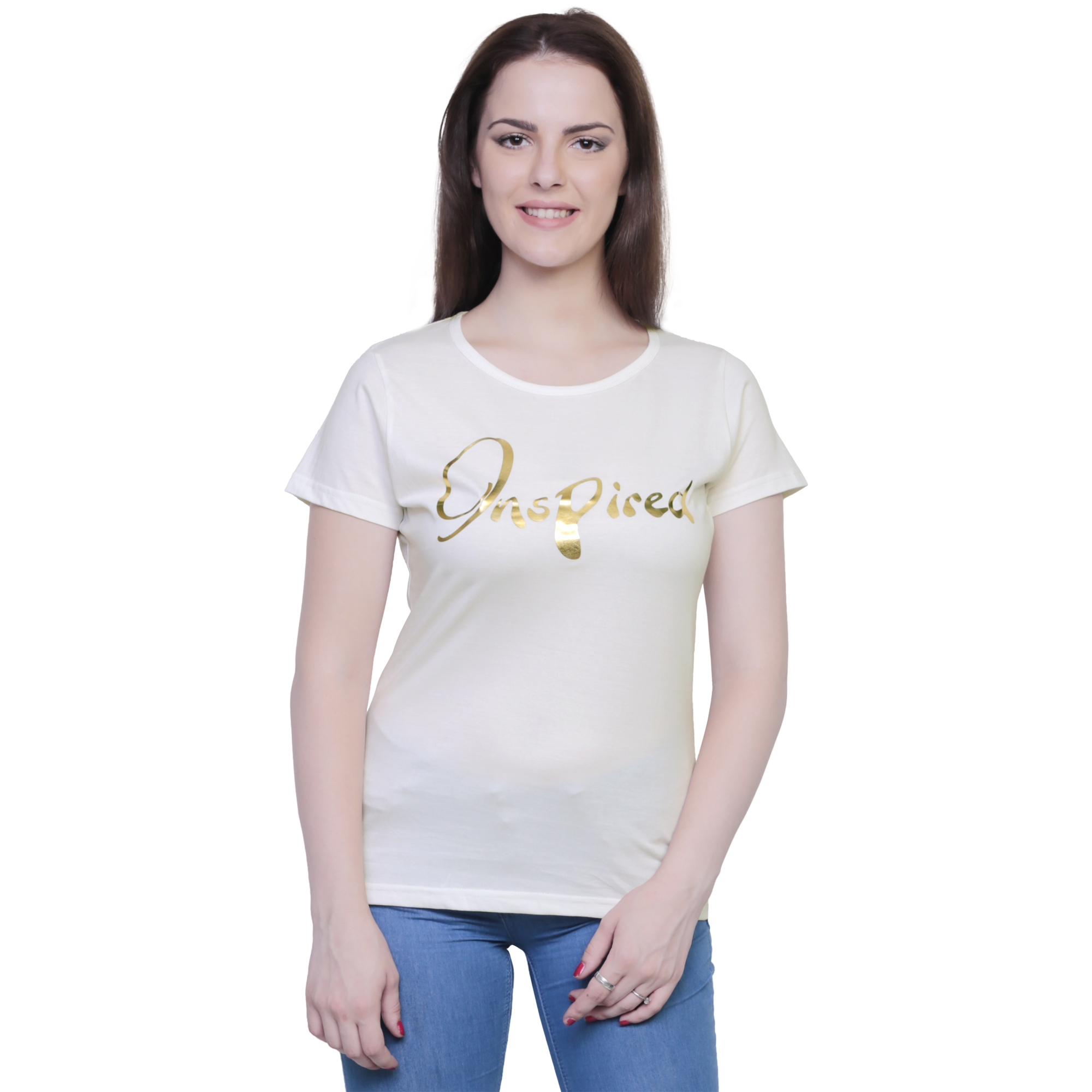 Charming Exclusive Look Round Neck Printed T.Shirt For Dashing Women
