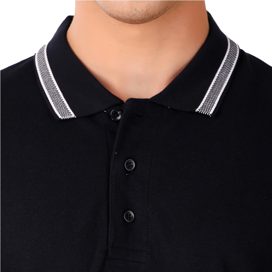 Polo Neck Jacquard Collar Balck T-Shirt